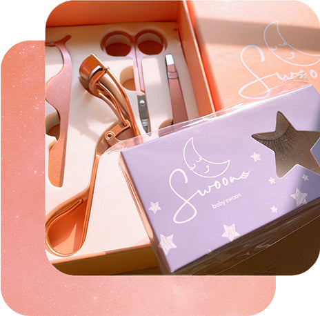 - Using your Swoon Curler, curl your eyelashes to help match the shape of your Swoon lashes